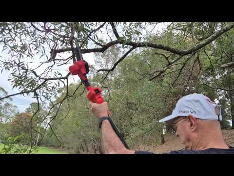 Battery powered NLG Blowmaxx and 6" chainsaw with long reach extension pole
